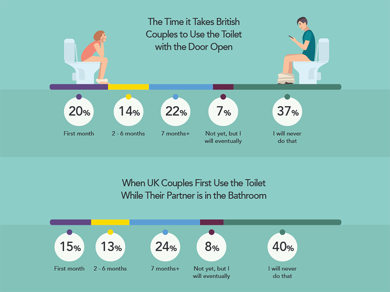 Almost a quarter of couples said they waited more than 7 months to finally go to the toilet while their partner was in there, suggesting this act is a step too far for the early stages and needs a greater amount of closeness.
