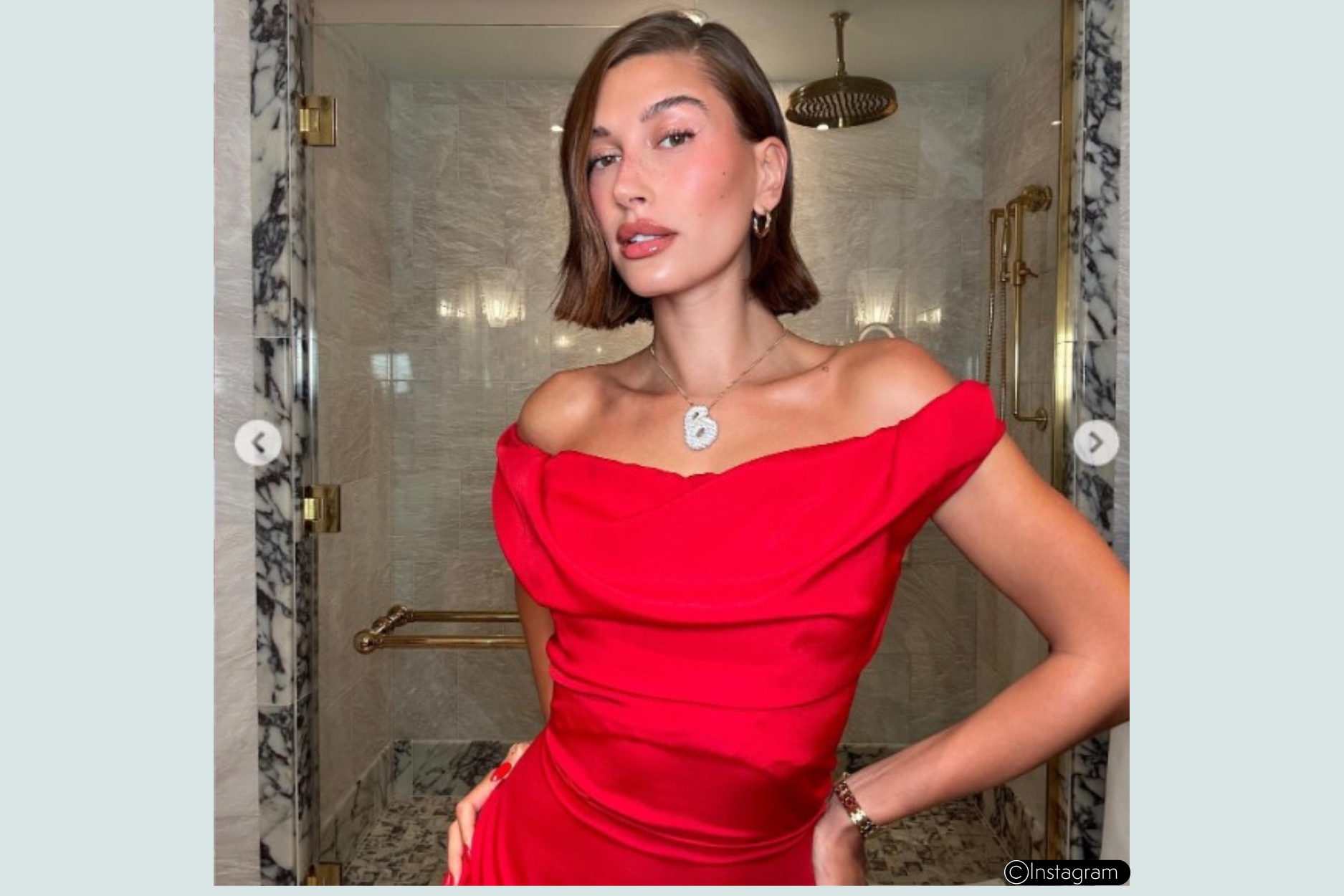 Hailey Bieber is well known for her glamorous social posts but none more so than this stunning picture she took in front of her insanely beautiful walk-in shower enclosure. The model shared it to her 53.7M fans on her Instagram page.